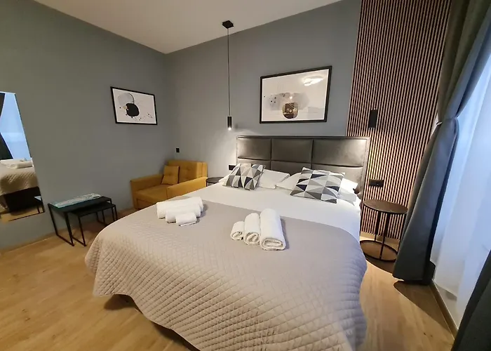 Samo 1,2 km udaljen od neobične kružne bizantske crkve svetog Donata, 25 m² Lux soba 303 Zadar sastoji se od balkona i dnevnog boravka s pogledom na vrt. Ovaj apartman s jednom spavaćom sobom privlači goste uslugama depilacije, pedikure i manikure te je svega nekoliko minuta hoda od marine Paseo Maritimo.